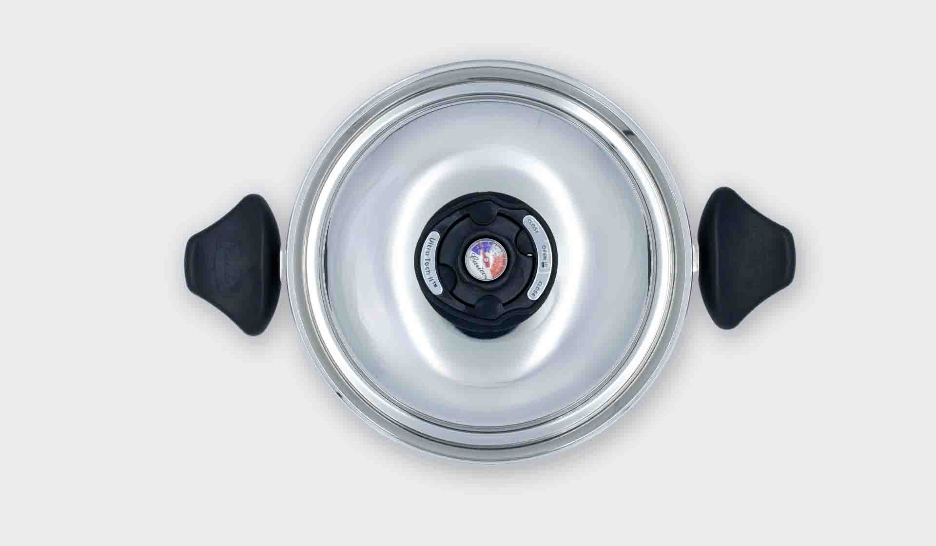 La tecnología Ultra Tech II para cocinar saludablemente ha sido desarrollado científicamente para conducir el calor de la manera más eficiente, generando un sello natural para cocinar al vacío sin perder vitaminas, ni minerales y así cocer vegetales sin agua y carnes sin grasa.